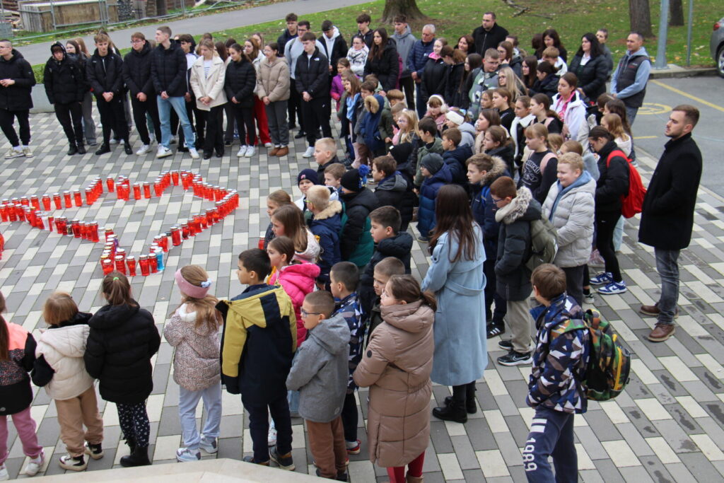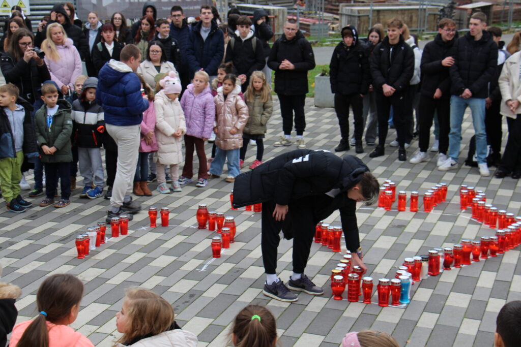 U srijedu, 19. studenoga, u našoj smo školi obilježili 34. godišnjicu pada Grada heroja – Vukovara te se s posebnim pijetetom prisjetili svih izgubljenih ljudskih života u Domovinskom ratu. Kratkim programom, u kojem smo zajedno sudjelovali sa učenicima i djelatnicima Katoličke klasične gimnazije u Virovitici, odali smo počast paljenjem lampiona složenih u oblik vučedolske golubice te slova VU, kao simboličnog znaka za Vukovar.