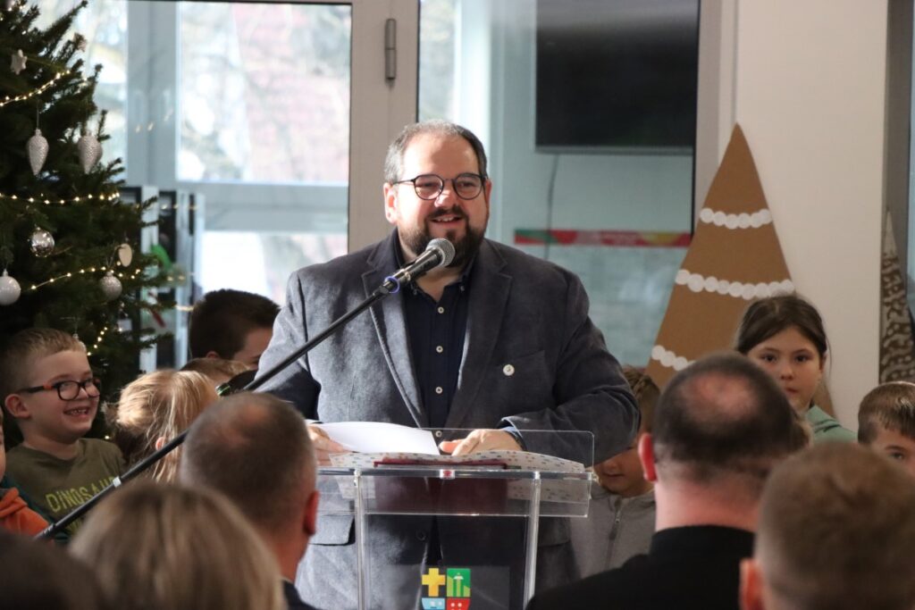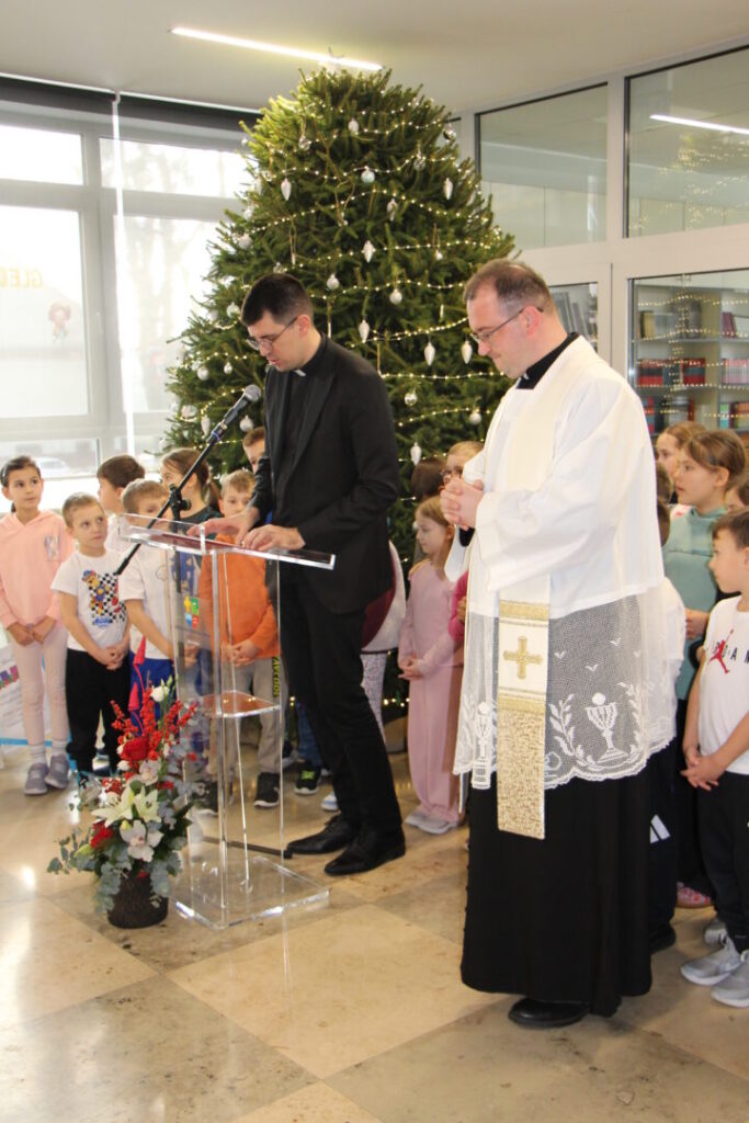 Uslijedio je potom i sam obred blagoslova kojega je predvodio predstojnik ureda za katoličke škole požeške biskupije u zajedništvu s vlč. Robertom Medvedom, duhovnikom Katoličke osnovne škole u Virovitici. Nadahnjujući se naviještenim evanđeoskim tekstom u tijeku obreda blagoslova, a riječ je o tekstu iz Matejeva evanđelja i čudesnom umnažanju kruha, vlč. Krunoslav je naglasio kako u pročitanom tekstu ne treba ostati samo na razini informacije kako je Isus učinio čudo, već da je poruka puno dublja, a primjenjiva i na naš današnji događaj; potrebno je primijetiti da se čudo dogodilo tada i zbog toga kada je netko malu količinu svoje hrane odlučio podijeliti s drugima. Tu je početak čuda koje se onda ostvarilo Isusovim djelovanjem. To je poruka da se Bog u našem životu nalazi kao onaj koji donosi čudo i obilato daje, ali uz preduvjet naše otvorenosti i spremnosti.