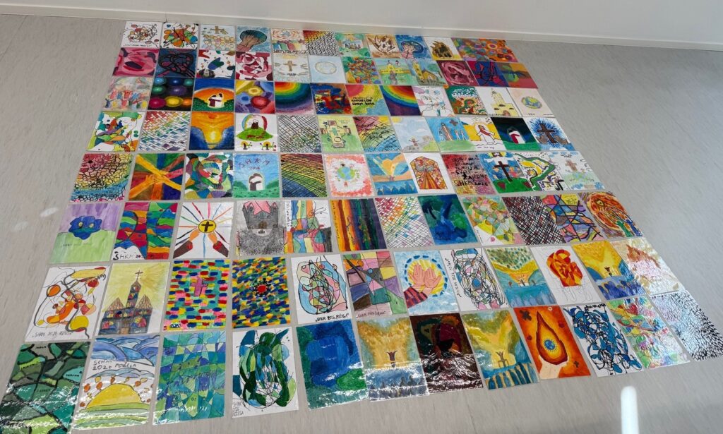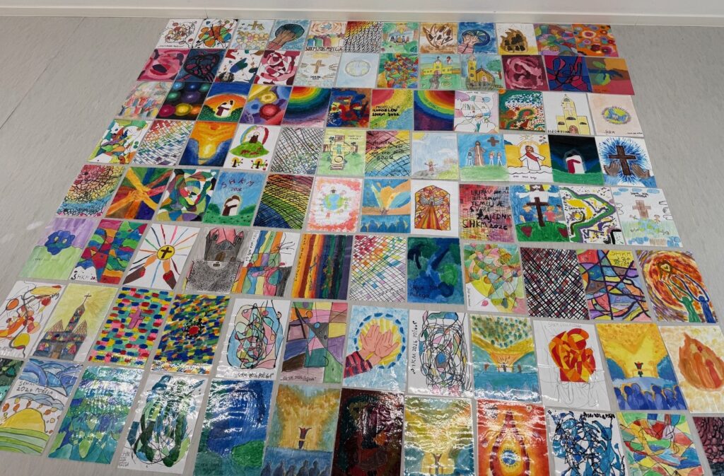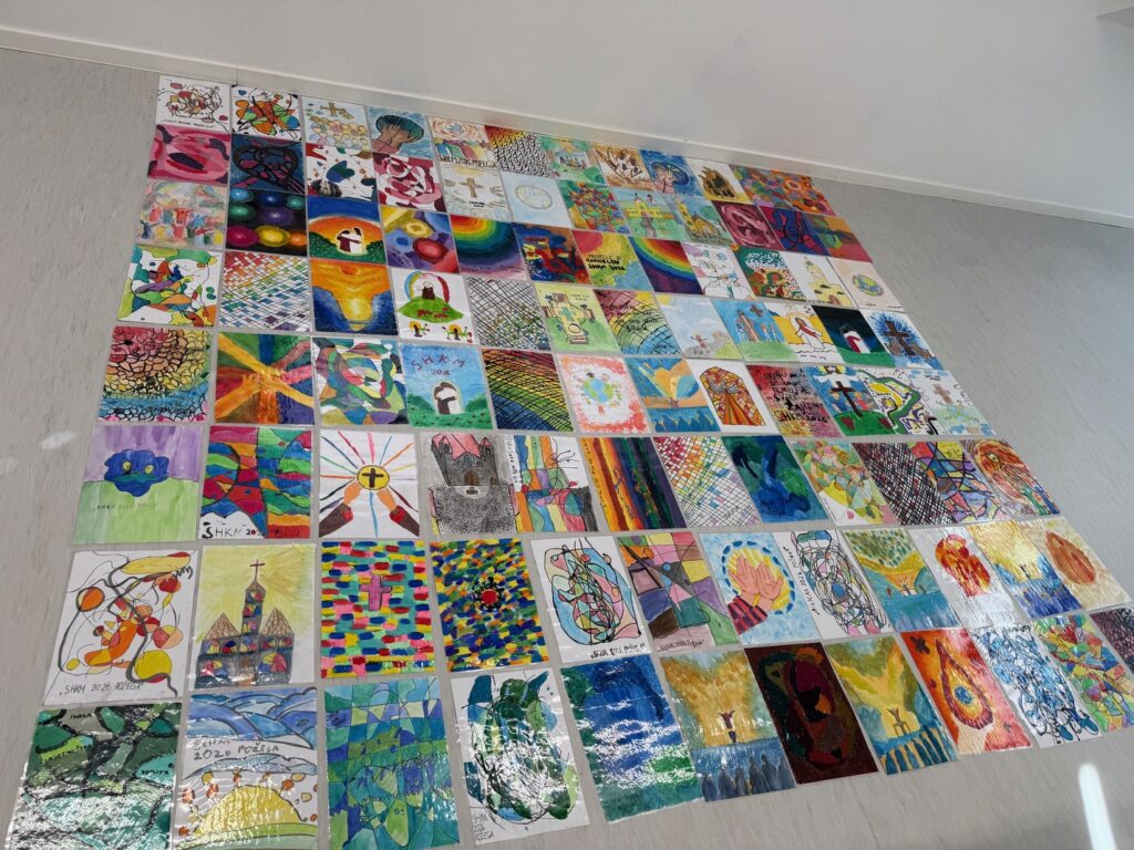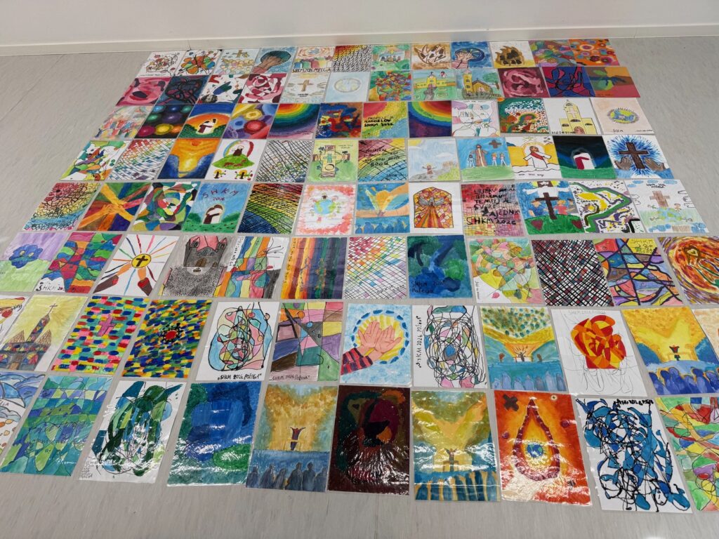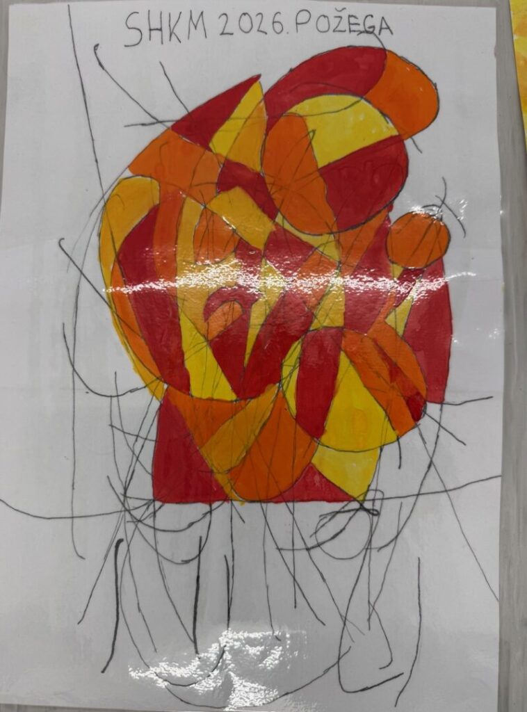 Povodom održavanja Susreta hrvatske katoličke mladeži u Požegi (2.svibnja 2026.) učenici predmetne nastave pod mentorstvom nastavnice Likovne kulture Ana-Marije Brodjanac izradili su tijekom prošlog mjeseca apstraktne i figurativne likovne radove u različitim tehnikama koje izražavaju osjećaj zajedništva, pripadnosti i radosti okupljanja. Tema „U ritmu zajedništva“ poticala je učenike na likovno promišljanje o susretu, povezanosti i zajedničkom hodu, u čijem je središtu Krist koji nas spaja. Čestitamo svim učenicima na trudu i promišljanju, a 97 najboljih će biti izloženo na ulicama kojima će se sudionici Susreta kretati, u obliku zastavica.